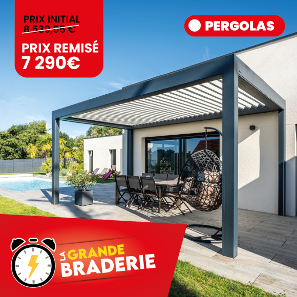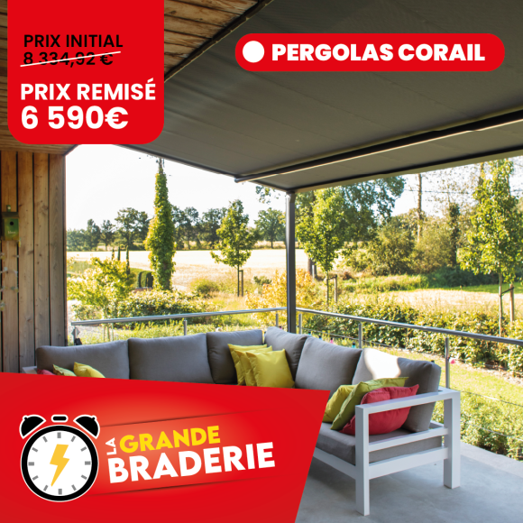 Installez une pergola Corail pour savourer vos moments en extérieur. Offre spéciale braderie Linconyl : prix exceptionnel, confort et design au rendez-vous.